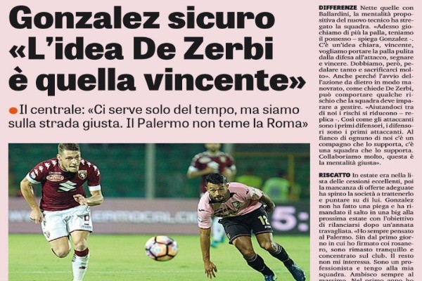 "Tranne che sull’attaccante Bentivegna infortunato, il tecnico rosanero Roberto De Zerbi può contare su tutto l’organico. Anche se Trajkovski e...