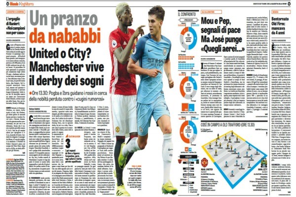 Queste le prime pagine dei principali quotidiani sportivi nazionali di oggi, sabato 10 settembre 2016.