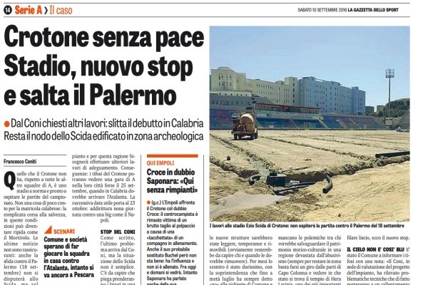 L'edizione odierna de "La Gazzetta dello Sport" analizza la situazione in casa Crotone, con lo "Scida" ancora alle prese con...