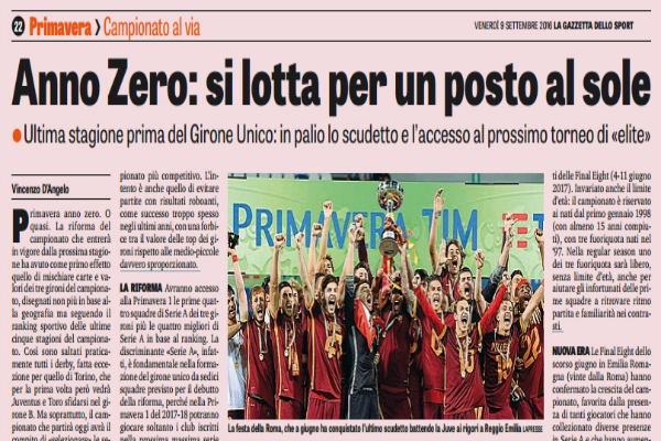 "Primavera anno zero. O quasi. La riforma del campionato che entrerà in vigore dalla prossima stagione ha avuto come primo...