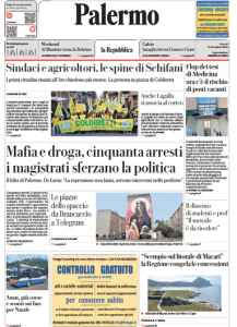 Prima pagina Repubblica Palermo: “Mafia e droga, 50 arresti”