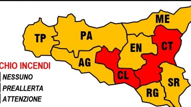 La Protezione civile regionale ha diffuso il bollettino per rischio incendi e ondate di calore, valido dalle 0.00 del 16 giugno per le successive 24 ore. Per le province di Catania e Caltanissetta il livello è di «allerta”; per la provincia di Palermo il livello è di «Preallerta».