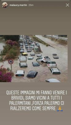 Anche il centrocampista rosanero Malaury Martin esprime la sua vicinanza e solidarietà alla città di Palermo, colpita nel pomeriggio di ieri da un violento alluvione, pubblicato una storia sul suo profilo Instagram: “Queste immagini mi fanno venire i brividi, siamo vicini a tutti i palermitani, forza Palermo ci rialzeremo come sempre”.