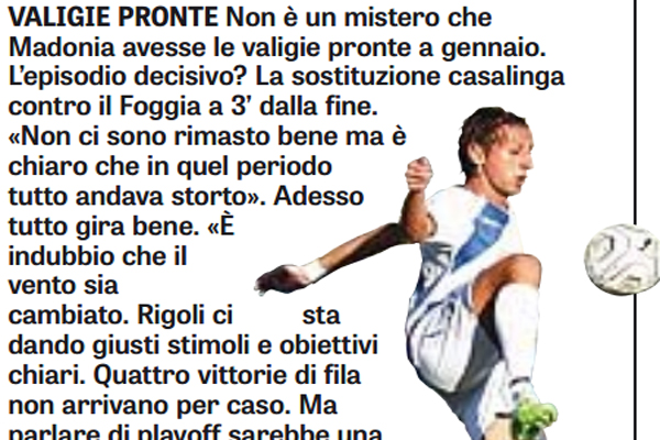 “La felicità dista 11 metri. Beppe Madonia non avrebbe mai pensato che un rigore gli avrebbe dato la possibilità di sbloccarsi. Per cinque mesi ha atteso il gol. Domenica è arrivato. «Sono andato sul dischetto molto deciso – dice l’attaccante –. Era il primo rigore concesso in questo torneo all’Akragas. Aveva un valore simbolico e sbagliarlo mi avrebbe dato fastidio». Penalty battuto in modo impeccabile. La gioia condivisa coi tifosi che si sono riconciliati con un giocatore in passato ampiamente contestato. «Quando le cose non vanno bene, i tifosi hanno ragione di lamentarsi. Io ho pagato in modo esagerato il dissenso ma posso capirlo. Su di me sono state riposte molte aspettative. Nel grigiore generale sono sprofondato anche io». Un grigiore senza fine con una squadra in balia degli avversari fino a dicembre. Brutti risultati e brutti pensieri fino a quello dell’abbandono. VALIGIE PRONTE Non è un mistero che Madonia avesse le valigie pronte a gennaio. L’episodio decisivo? La sostituzione casalinga contro il Foggia a 3’ dalla fine. «Non ci sono rimasto bene ma è chiaro che in quel periodo tutto andava storto». Adesso tutto gira bene. «È indubbio che il vento sia cambiato. Rigoli ci sta dando giusti stimoli e obiettivi chiari. Quattro vittorie di fila non arrivano per caso. Ma parlare di playoff sarebbe una forzatura. Dobbiamo salvarci. Questo è quello che conta e dobbiamo farlo al più presto. Possiamo migliorarci perché abbiamo molti infortunati pronti al rientro»”. Questo quanto si legge sull’edizione odierna de “La Gazzetta dello Sport”.