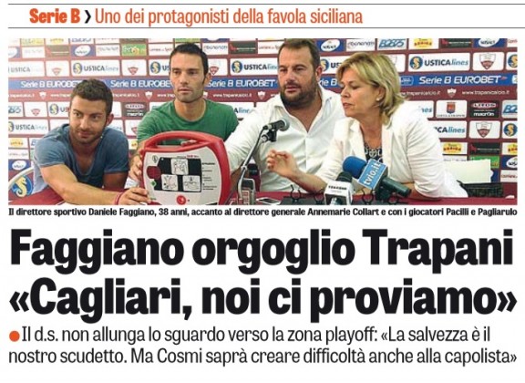 “Si sente in serie A ma non vuole… sentir parlare di playoff per la promozione in A. Daniele Faggiano ha costruito il «giocattolo» Trapani, che Serse Cosmi esibisce con orgoglio anche nelle sfide che, sulla carta, sembrano impossibili, come l’ultima a Pescara. «Abbiamo battuto una grande squadra, che meriterebbe una classifica ancora migliore – dice il direttore sportivo, 38 anni, originario di Veglie, in provincia di Lecce –. Ma non abbiamo tempo per esaltarci per i 7 punti conquistati in 3 incontri. La corsa verso la salvezza ci mette di fronte il Cagliari, che è di un’altra categoria. Con la formazione di Rastelli abbiamo perso in coppa Italia e in campionato, in particolare quel 4-1 è uno schiaffo che ancora ci fa male. Proveremo a mettere in difficoltà lo squadrone del presidente Giulini. Cosmi saprà stupire con le sue soluzioni tattiche». GESTIONE FAMILIARE Alla quarta stagione nel club granata, Faggiano ha allestito un gruppo che risulta un esplosivo cocktail di giocatori esperti, giovani emergenti e anche svincolati. Nel mercato di gennaio, il Trapani ha ridotto il monte-ingaggi che, al lordo e compresi gli emolumenti dello staff tecnico, non supera i 2,9 milioni. Solo 3, 4 giocatori hanno strappato un ingaggio di 83 mila euro al netto più gli incentivi. «La società poggia sui sacrifici della famiglia Morace, con il presidente Vittorio, il comandante, e la moglie Annemarie Collart, direttore generale – fa notare l’operatore di mercato –. In un club come il Trapani mi sento trattato da serie A. Per noi, la salvezza in B vale quanto uno scudetto vinto da Juventus, Napoli, Inter o Roma. Nel nostro piccolo siamo un modello, anche se Chievo ed Empoli sono i nostri riferimenti. Qui i tifosi sanno bene quanto sia difficile sopravvivere in B. Pur felici per le ultime vittorie che ci hanno portato a ridosso della zona playoff, rimaniamo con i piedi per terra. Nella lotta per la promozione soffrono club che hanno investito fior di milioni…». POLI OPPOSTI Nella sua avventura a Trapani il d.s., cresciuto sotto la guida di Giorgio Perinetti a Bari e a Siena, si è concesso Scozzarella, come lo sfizio più oneroso (150 mila euro). La cessione più importante è stata quella di Mancosu, nel gennaio 2015 al Bologna, che ha fruttato 1,1 milioni. «Anche Nadarevic ha avuto un costo notevole – sottolinea Faggiano –. Dobbiamo aguzzare l’ingegno e scoprire giocatori in Lega Pro e anche in serie D, oppure di intravedere qualità in qualche ragazzo che in B non trova spazio». Sono così arrivati il genietto Coronado, brasiliano pescato a Malta nel Floriana di Gaucci, Citro, preso in D dal Real Marcianise la scorsa stagione e ora a quota 8 gol, e l’ariete Petkovic, croato, proprietà Catania e proveniente dall’Entella. «Per Coronado e Petkovic, ottenuti in prestito, possiamo esercitare il diritto di riscatto a titolo definitivo. Ma è giusto evidenziare i “valori” del gruppo: da Raffaello, svincolato dalla Lupa Roma, a Nizzetto, tornato dal Modena a gennaio per rimettersi in discussione a Trapani». I BONUS Partito dalla base dei 25 mila euro spuntati nello scorso campionato, Citro, ormai il goleador granata, sarà «premiato» con un aumento di ingaggio. Nizzetto si è… accontentato di 18 mila euro per mezzo campionato; Eramo «pesa» solo 60 mila euro sul Trapani, perché almeno altrettanti sono a carico della Sampdoria, proprietaria del cartellino. «Tra gli incentivi “personalizzati”, abbiamo fissato diverse quote punti, e qualcuno ha anche voluto porre il traguardo playoff – afferma il d.s. –. Il presidente Morace non ama molto i bonus da concedere agli attaccanti in base ai gol segnati; il “comandante” ne fa una questione di ruolo, perché è preoccupato da quella forma di egoismo che potrebbe scattare nella punta, che prova a tirare di più in porta per raggiungere la sua meta-premio». Faggiano non ci casca, attende il Cagliari ma proprio non vuole guardare la classifica. «Non parlatemi di playoff: quando arriveremo oltre i 50 punti, che ci avvicinano alla salvezza, allora alzerò lo sguardo. Solo per curiosità…»”. Questo quanto si legge sull’edizione odierna de “La Gazzetta dello Sport”.