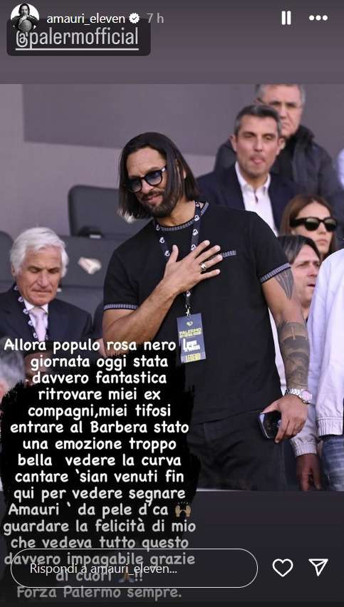 Ieri pomeriggio anche Amauri era presente tra le leggende rosanero per assistere al match tra Palermo e Sampdoria. L’ex calciatore brasiliano ha voluto esternare la sua gioia attraverso la seguente Instagram stories: