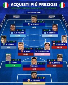 Il noto portale "Transfermarkt" ha stilato una formazione con gli acquisti più preziosi nella prima metà del mercato di gennaio....