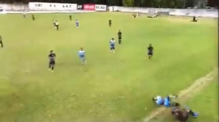 A pochi istanti dal fischio finale della finale di Liga de Luján in Argentina che vedeva l’Unión de El Jagüel in vantaggio per 4-1 sul Sindicato Argentino de Televisión, il mediano argentino Lucas Torres, non nuovo a cose del genere dato che nel 2016 aggredì un arbitro e prendendo 24 giornate di squalifica, frustrato dal risultato, ha deciso di agire direttamente sugli avversari gettandosi brutalmente con entrambi i piedi in avanti verso un calciatore del El Jagüel rischiando di rompergli una gamba. Subito i compagni del calciatore atterrato si sono avventati sull’autore del fallo e ne è scaturita una rissa incredibile, con calci e pugni. In basso il VIDEO dell’intervento killer: