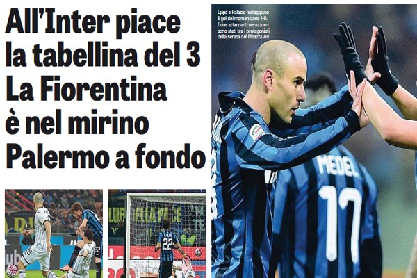 Gazzetta dello Sport: “All’Inter piace la tabellina del 3. La Fiorentina è nel mirino, Palermo a fondo”