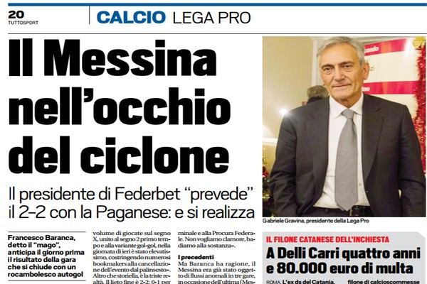 "Il Messina passa al contrattacco. Dopo l’ennesima segnalazione della Federbet che avrebbe individuato un flusso di puntate anomale su Messina-Paganese...