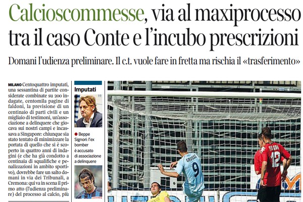 "Centoquattro imputati, una sessantina di partite considerate combinate su 200 indagate, centomila pagine di faldoni, la previsione di un centinaio...