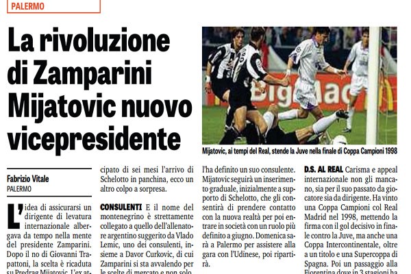 Gazzetta dello Sport: “La rivoluzione di Zamparini, Mijatovic nuovo vicepresidente. Nuovi investitori in arrivo?”