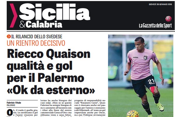 "Ok, il ruolo è quello giusto. Lo certificano il gol e l’assist vincente per Hiljemark. Robin Quaison non ha dubbi....