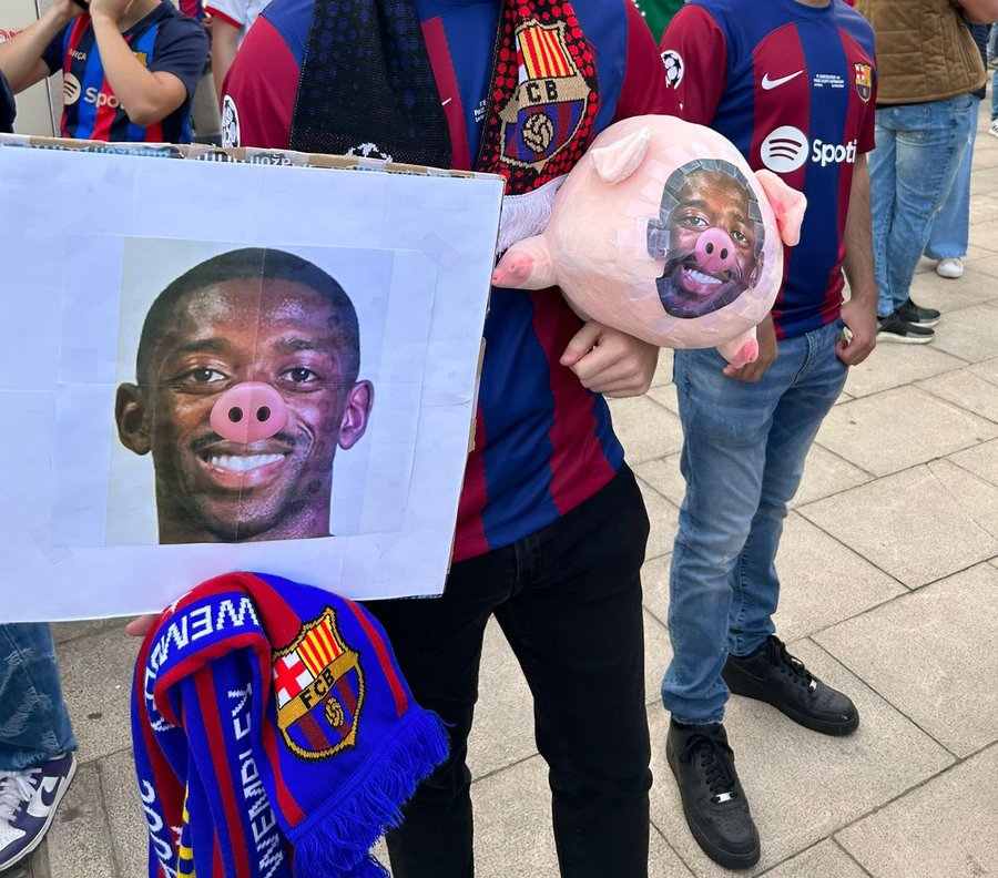 In questo momento si sta disputando Barcellona-Psg, gara di ritorno dei quarti di finale di Champions League. I tifosi catalani hanno riservato un’accoglienza tutt’altro che ospitale per Ousmane Dembelé, militante nelle file blaugrana dal 2017 al 2023. Nel pre-partita, all’esterno dello stadio, è stata bruciata una sua maglia, mentre un altro striscione lo ritrae con un naso di maiale. Al giocatore francese non viene perdonato il fatto di aver forzato la sua cessione al Psg. Di seguito le immagini della contestazione: