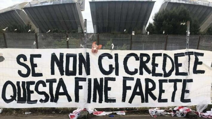 La Polizia cerca collegamenti con il lancio di fumogeni contro il pullman della squadra, avvenuto il 25 aprile, e con un altro striscione esposto il giorno prima su un ponte della tangenziale.