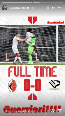 Attraverso i propri social Luigi De Laurentiis ha pubblicato l’immagine di Dorval che abbraccia Brenno dopo il rigore fallito da Di Mariano e una breve, ma eloquente didascalia: “Guerrieri“.