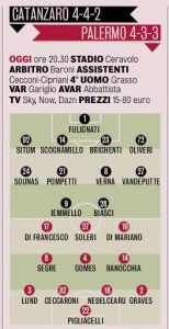 L'edizione odierna de "Il Giornale di Sicilia" si sofferma sulle probabili formazioni del match tra Catanzaro e Palermo.