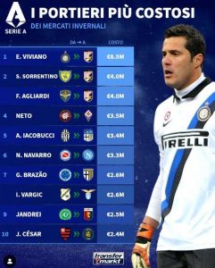 Il portale di statistiche “Transfermarkt” ha stilato la classifica dei portieri più costosi della Serie A acquistati nel mercato invernale....