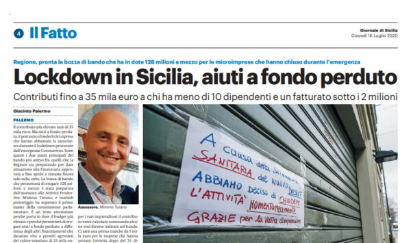 L'edizione odierna de "Il Giornale di Sicilia" si è soffermata, facendo riferimento al lockdown in Sicilia, sugli aiuti a fondo...