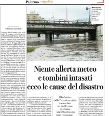 Secondo quanto riporta il "Giornale di Sicilia", in merito all'alluvione verificatosi nella giornata di ieri a Palermo, rimane adesso il...
