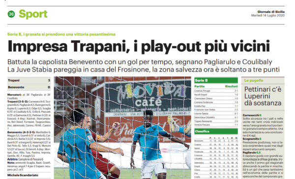 L'edizione odierna del "Giornale di Sicilia" parla dell'impresa del Trapan che ieri ha battuto il Benevento 2-0. A 4 giornate...