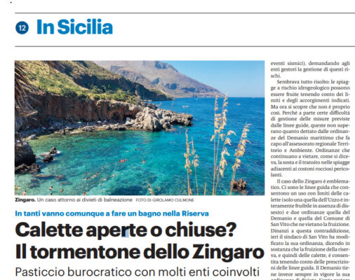 L'edizione odierna del "Giornale di Sicilia" parla del pasticcio delle calette dello Zingaro. Non si sa se sono aperte o...