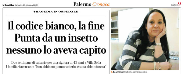 L'edizione odierna di "Repubblica" si è soffermata sulla storia di Elisabetta Semprecondio, 45 anni, madre di tre ragazzi, secondo i...