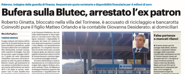 L'edizione odierna del "Giornale di Sicilia" si sofferma sulla bufera Blutec. I Ginatta non esitavano a spendere i soldi destinati...