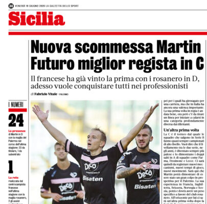 L'edizione odierna della "Gazzetta dello Sport" si sofferma su Malaury Martin, centrocampista del Palermo. Il francese ha scoperto un club...