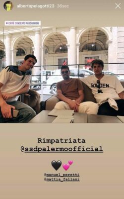 Attraverso le proprie "stories" Instagram, il portiere rosanero Pelagotti ha pubblicato una foto che lo raffigura con i due under...
