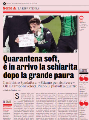 L'edizione odierna della "Gazzetta dello Sport" si sofferma sulla schiarita relativa alla quarantena. Un atto del Governo dovrebbe risolvere il...