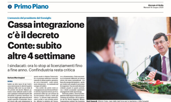 L'edizione odierna del "Giornale di Sicilia" si sofferma sulla cassa integrazione. Il governo interviene con un decreto legge sugli ammortizzatori...