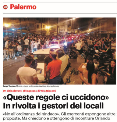Gds: “Palermo «Queste regole ci uccidono». In rivolta i gestori dei locali «No all’ordinanza del sindaco»”