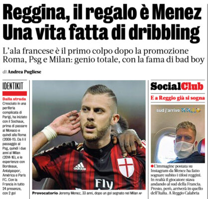L'edizione odierna della "Gazzetta dello Sport" si sofferma sul possibile approdo di Jeremy Menez alla Reggina. Firmerà un contratto biennale....