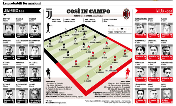 L'edizione odierna della "Gazzetta dello Sport" riporta le probabili formazioni di Juventus-Milan, semifinale di Coppa Italia che darà avvio alla...
