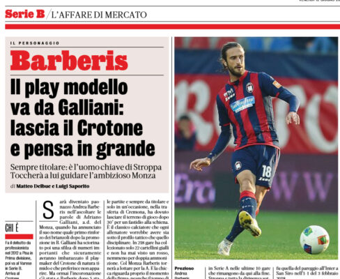 L'edizione odierna della "Gazzetta dello Sport" si sofferma sull'approdo di Andrea Barberis al Monza. Saluta la Calabria dopo cinque stagioni....