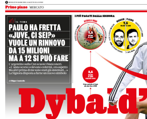 L'edizione odierna della "Gazzetta dello Sport" si sofferma su Paulo Dybala, attaccante della Juventus. L'ex rosa al momento guadagna 7,3...