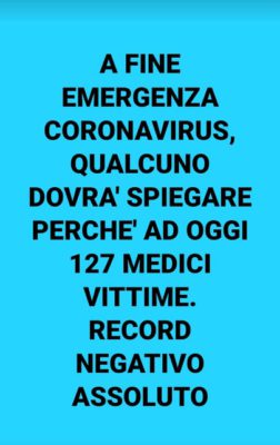 Di Piazza attraverso un post sulla sua pagina Facebook, descrive tutta la sua amarezza per l'alto numero di medici morti...