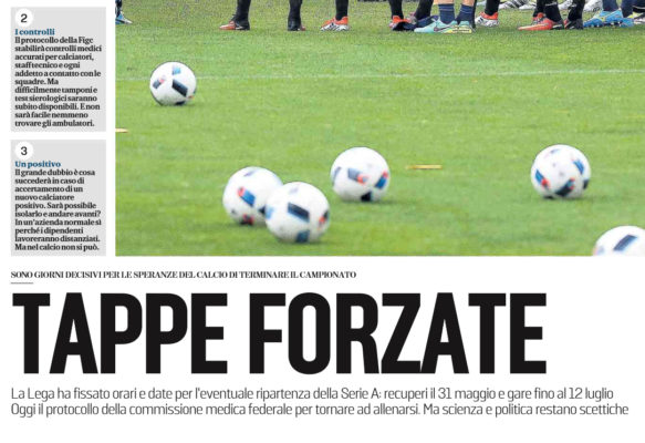 L'edizione odierna de "La Stampa" si sofferma sulla ripartenza della Serie A. I primi sei turni si giocherebbero su due giorni...