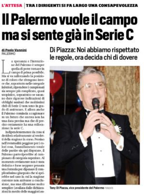 Corriere dello Sport: “Il Palermo vuole tornare in campo, ma la C è in tasca. Ecco perché”