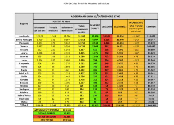 Con 566 vittime nelle ultime 24 ore per Coronavirus, il numero complessivo dei morti è salito a 20.465 (ieri erano...