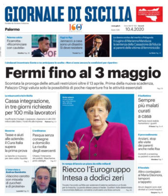 In alto la prima pagina dell'edizione odierna del "Giornale di Sicilia". Scontata la proroga delle attuali restrizioni oltre il 13...