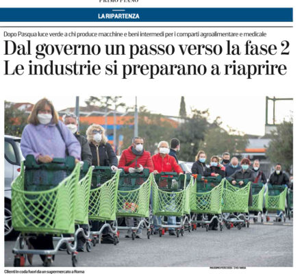 "Per la fase 2, dopo il lockdown, dovremo immaginare un’organizzazione che ci consenta di uscire dal blocco totale, ma ci...