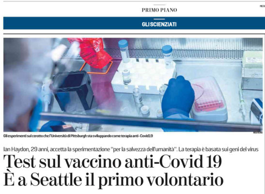L'edizione odierna de "La Stampa" si sofferma sul primo volontario soggetto a sperimentazione per il vaccino anti-Covid-19. Ian Haydon, cittadino...