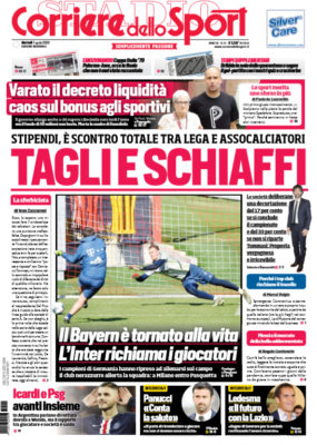 La prima pagina dell'edizione odierna del "Corriere dello Sport" parla dello scontro tra giocatori e squadre per gli stipendi. Le...
