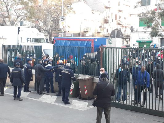Riapre a Palermo il mercato ortofrutticolo ed è subito ressa fuori dai cancelli, con commercianti ammassati in attesa della riapertura....