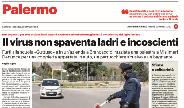 L'edizione odierna del "Giornale di Sicilia" si sofferma sulla resistenza di ladri e incoscienti nonostante l'emergenza Coronavirus. Le forze dell'ordine procedono...