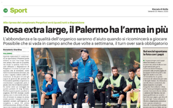 Gds: “Rosa extra large, il Palermo ha l’arma in più. Possibile che si vada in campo anche due volte a settimana, il turn over sarà obbligatorio”