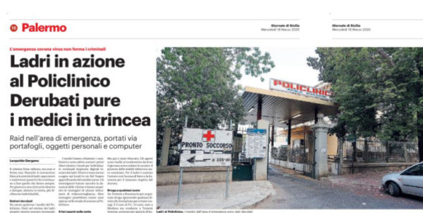 L'edizione odierna del "Giornale di Sicilia" si sofferma sulla criminalità nel bel mezzo dell'emergenza Coronavirus. Neanche il coronavirus blocca le attività...