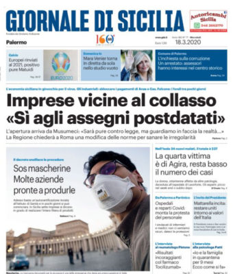 Nella sua prima pagina, l'edizione odierna del "Giornale di Sicilia" si sofferma sulla situazione delle imprese.